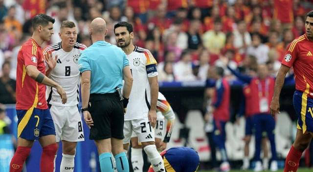 五大联赛,五大联赛直播,英超直播,西甲赛程,意甲比分,德甲预测,法甲分析/全网最全五大联赛资讯平台,涵盖英超、西甲、德甲、意甲、法甲直播入口、赛程积分、实时比分与专家预测分析,手机电脑均可访问!在北京时间7月6日进行的欧洲杯首场1/4决赛中,东道主德国男足以1-2的比分被西班牙绝杀,无缘晋级4强。这场备受瞩目的对决也成为了一场惨烈的碰撞,全场比赛共有39次犯规,主裁安东尼·泰勒则吹罚了16次黄牌和1张红牌。