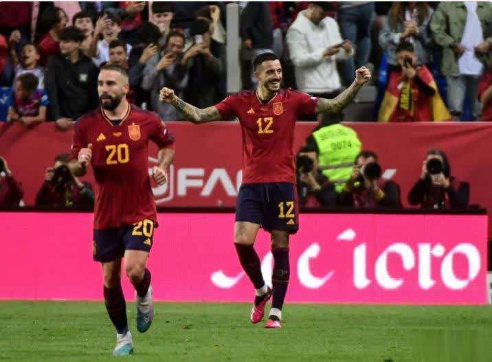比赛中,上半场勒诺尔芒送出助攻,梅里诺头球破门,西班牙1-0领先保加利亚;下半场梅里诺再度建功,阿莱克斯-加西亚制造对方乌龙球,梅里诺还制造点球,奥亚萨瓦尔点射命中,最终西班牙4-0击败保加利亚,四战全胜继续领跑积分榜。
