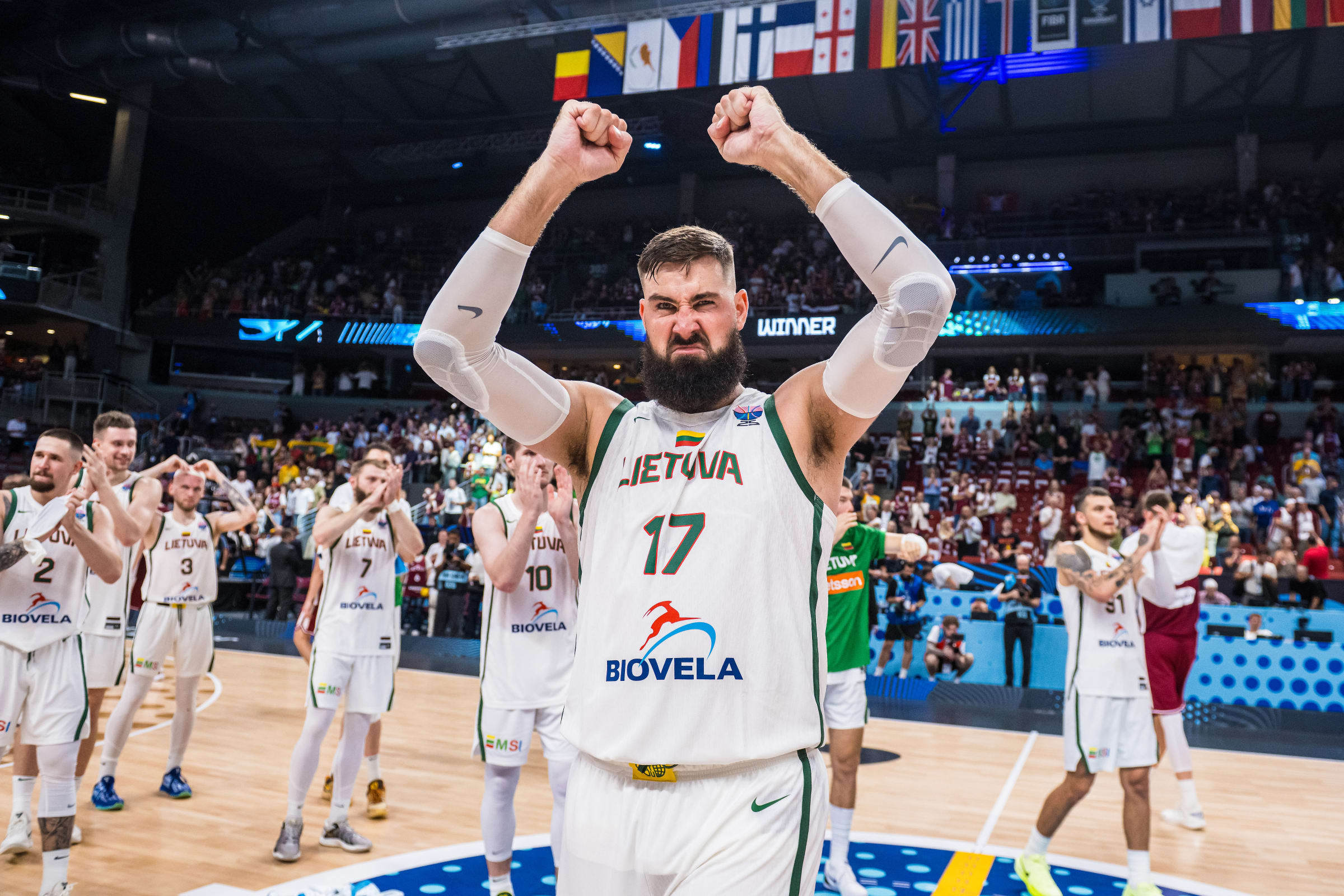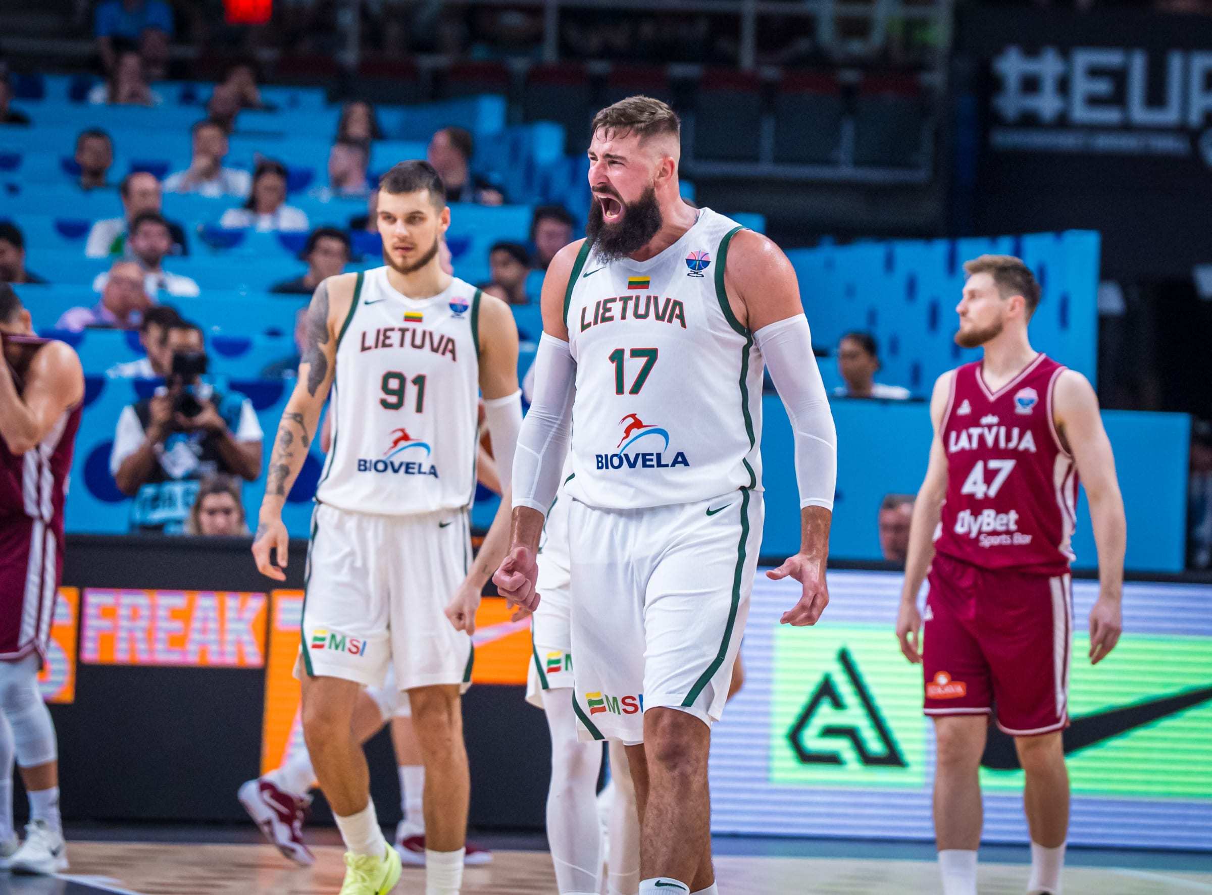 末节决战,立陶宛队稳扎稳打,保持着较为稳定的领先。拉脱维亚队在比赛的最后时刻发起了最后的反扑,拉马兹连续命中三分球,将分差缩小至5分,现场气氛顿时紧张起来。然而,在关键时刻,拉马兹却因一次违体犯规而错失了继续追分的良机。立陶宛队则抓住了这次机会,通过稳健的罚球,最终锁定了胜局。
