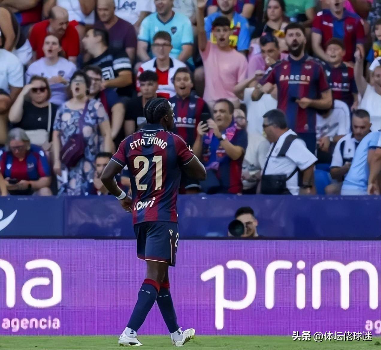 西甲第6轮,在莱万特主场迎接强敌皇家马德里的比赛中,虽然莱万特最终是毫无悬念的1比4告负,但一位年轻前锋的进球却成为了莱万特球迷心中的亮点。21岁的埃塔·埃永在本场比赛中,为主队打入唯一进球,为莱万特在主场挽回些颜面。要知道,这已经是他本赛季在6场西甲比赛中的第4个进球,此外他还贡献了3次助攻。