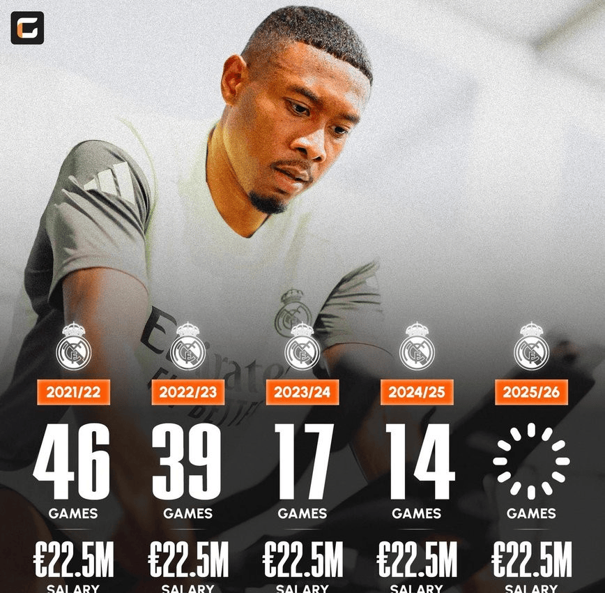 拿着2250万欧高薪的奥地利后卫,自由转会时的高额签字费摊成天价年薪。但皇马续约?不存在的!