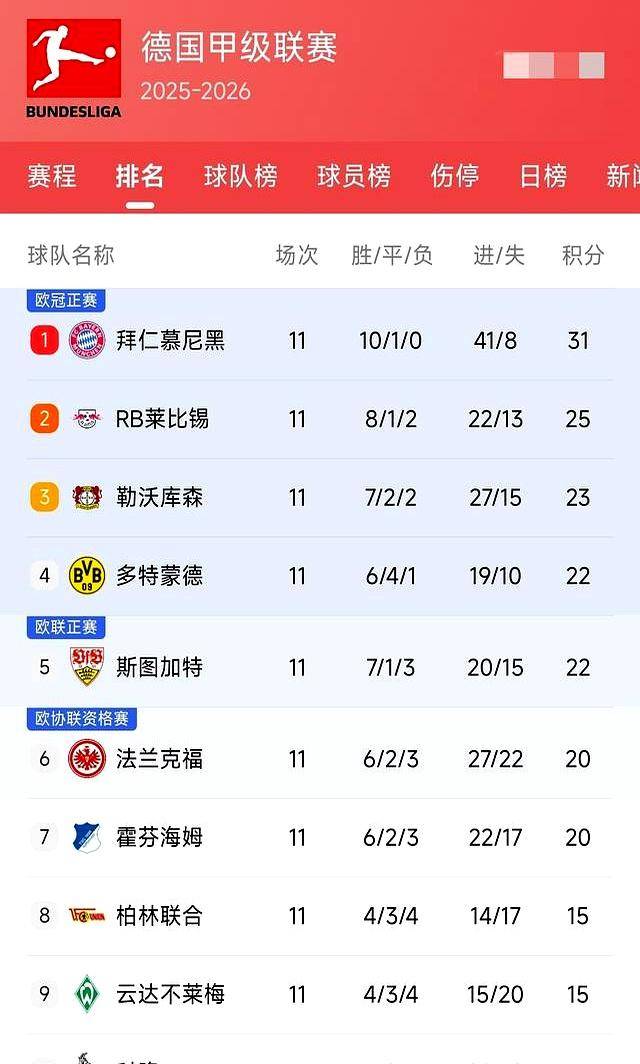 RB莱比锡、勒沃库森和多特蒙德分列二到四位,但积分差距已经拉开。尤其是多特,这赛季状态起伏不定,想挑战拜仁的霸权,难度不小。